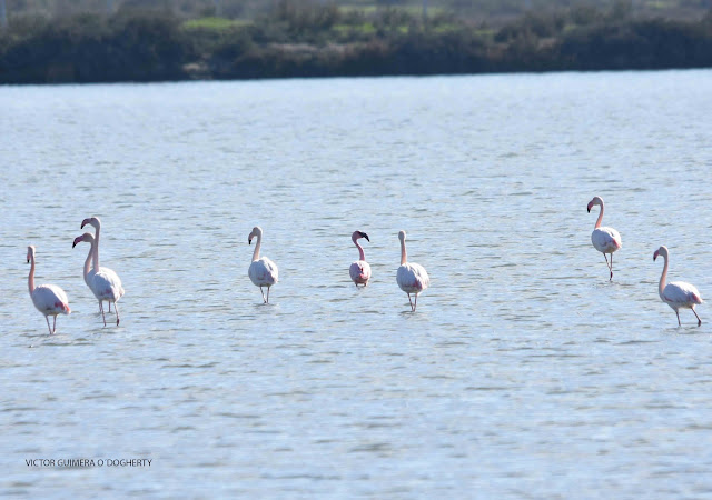 Junto a un grupo de los abundantes Flamencos Rosas " Phoenicopterus roseus" en las Salinas de Bonanza.